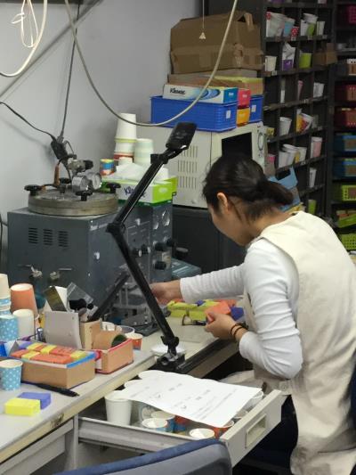 指輪やペンダントトップなど、シルバーやゴールドのアクセサリーを製造する会社。まずアクセサリーのゴム型をもとにワックスで型をとる。これをツリーにかけて石こうを流し込み大量生産のための型を作成。この型に溶かしたシルバーやゴールドを流し込み、固まったら磨いて仕上げ。石をつける作業もあります。この4つの工程を8人で分担して行います。みんなで丁寧に教えるので焦らず1つずつ覚えてくださいね!